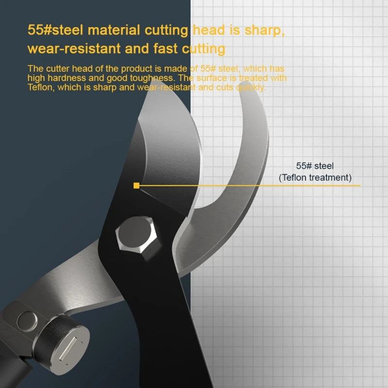 These shears are designed with unique leverage structured to eliminate as much effort as possible, so you don’t have to use much power to make cuts with these tools. The surface of the shears is professionally treated, not easy to rust, large opening cutting is smooth.
